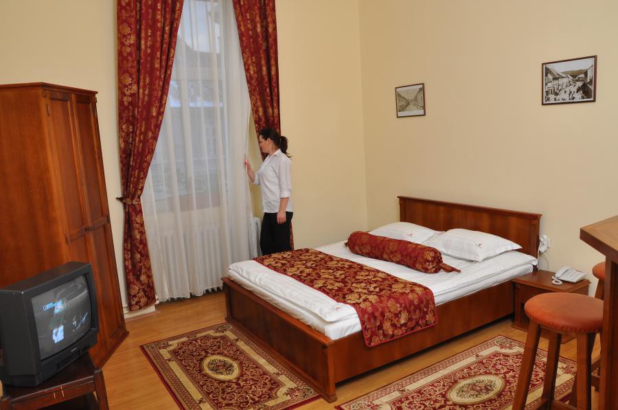 Hotel conference room has a capacity of 20 seats and is equipped with new furniture, flipchart, projector, wireless internet and cable. It is ideal for training, interviews, presentations, meetings. All actions can be followed by coffee-brake, organized meals, cocktails. Accommodation: 28 rooms for 47 persons in 8 single rooms 16 double rooms 2 apartments 2 suites